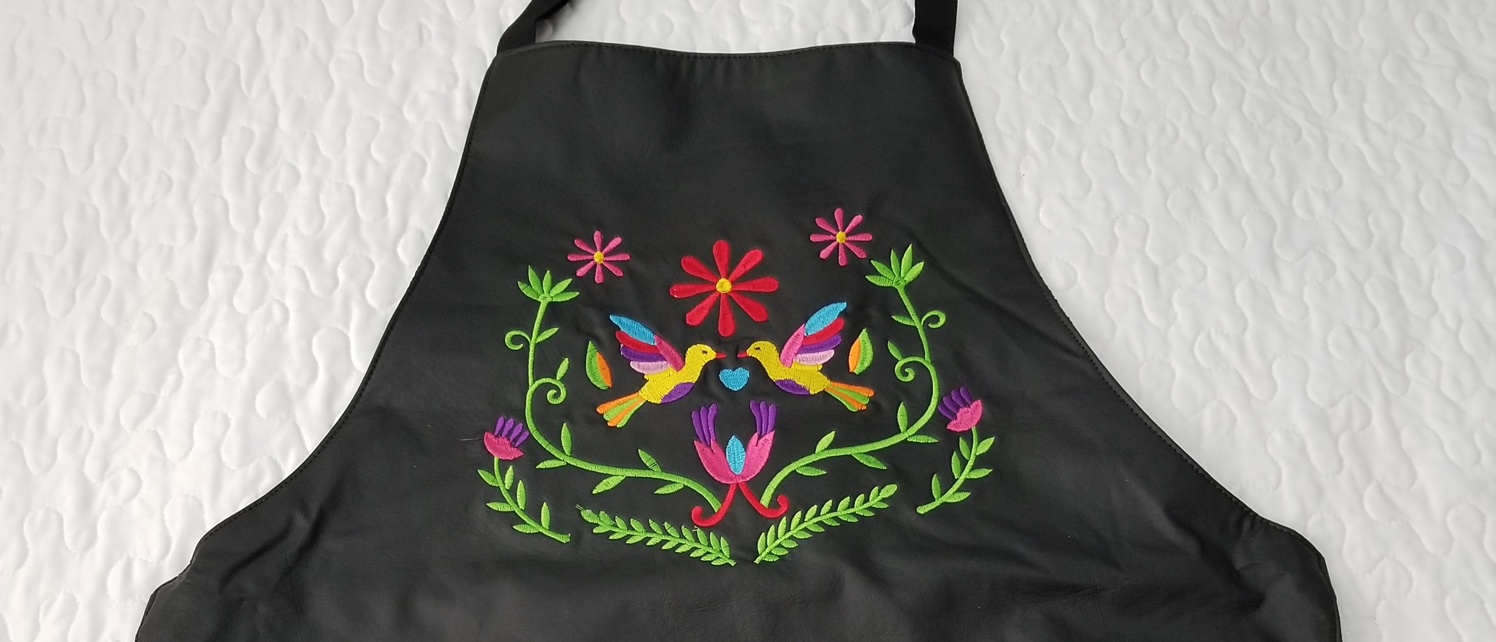 Mandiles de tacto piel negro y de varios colores, bolsillos con cierre y amarre de clip.